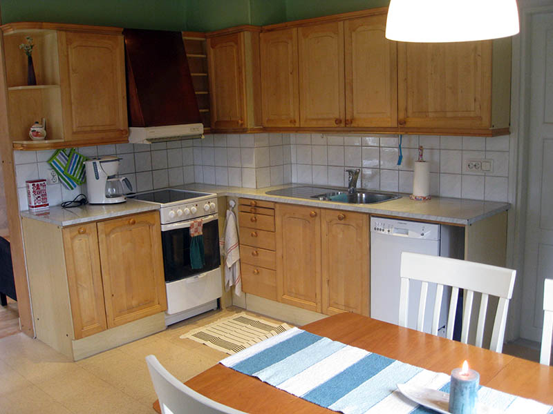 Kaikki huoneet kalustettu, keittiössä astiat, astianpesukone, jääkaappi, pakastin, mikroaaltouuni, kahvinkeitin. WC:ssä pyykkikone. Imuri. Alakerran ikkunoissa rullaverho, yläkerran ikkunoissa sälekaihtimet. Iso terassi auringon suuntaan. Terassilla ruokailuryhmä kuudelle ja kaasugrilli. Oma puutarha sekä hyvä perunakellari. Autolle oma autokatos.