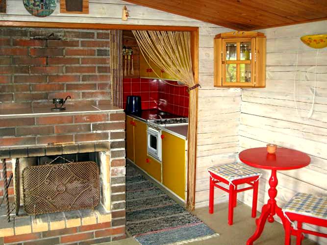 Varusteet: Sähkö, kylmä vesi, kaasuhella, kaasugrilli, perusastiasto, huonekalut.